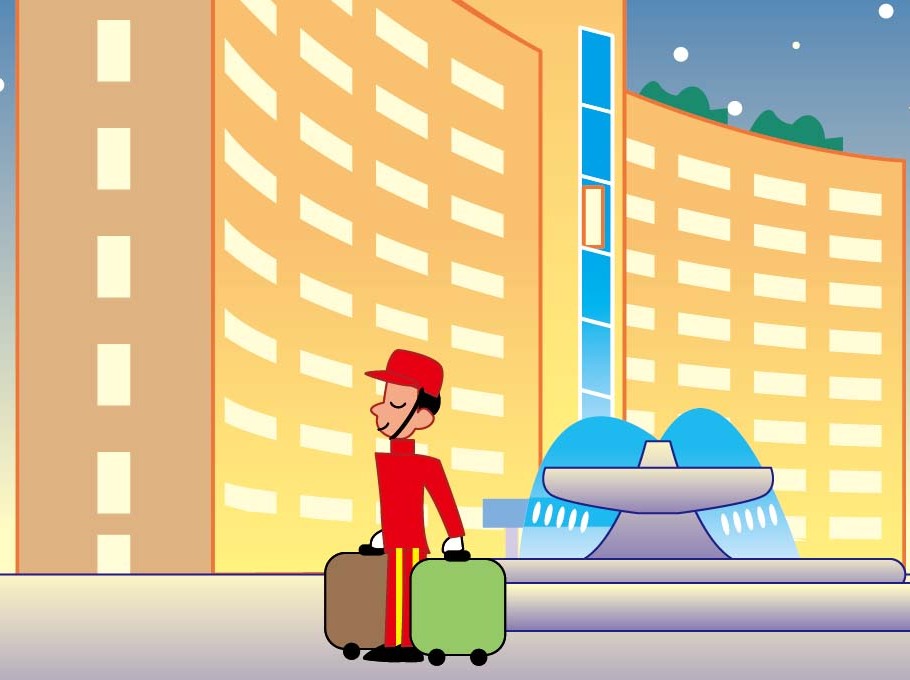 チェックイン時間に到着すると、エントランス前にはスタッフの方が待機しており、荷物は館内まで運んでいただけました。
