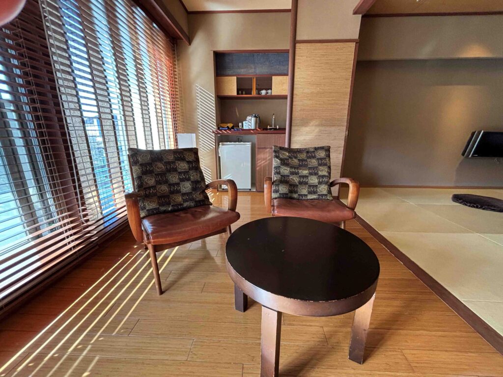 まず、客室内の設備はやや年季を感じる部分があり、冷蔵庫は昔ながらの取り出すと課金されるタイプ。