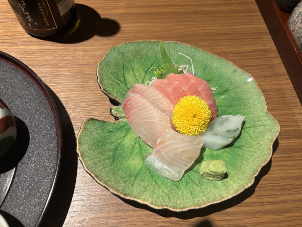 まぐろ、鯛、カンパチ、イカのお刺身。