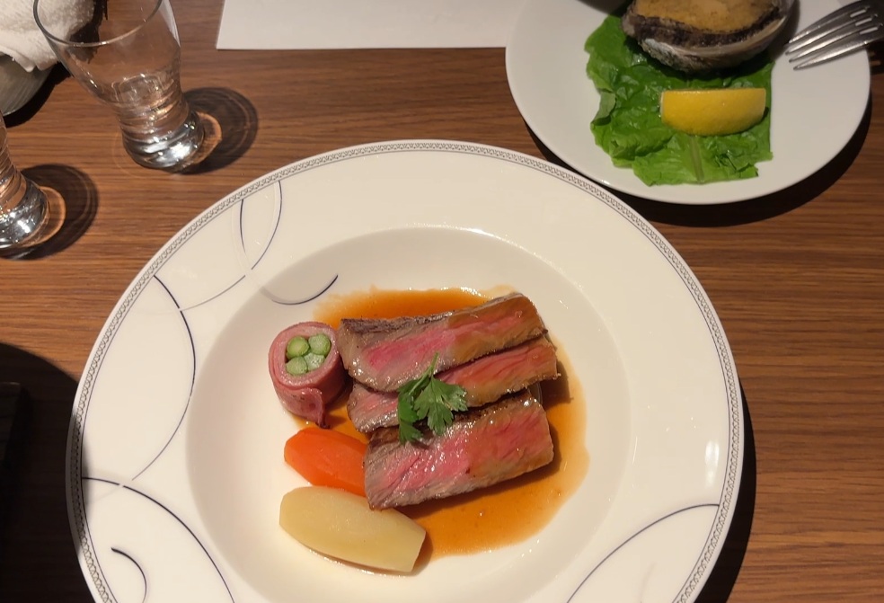 これも、脂が少なめながら、歯でも噛めるような柔らかさと肉の甘旨味を感じられる美味しいステーキでした