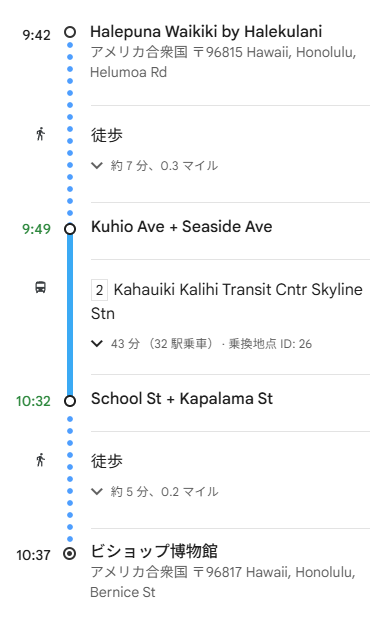 クヒオ通りから乗り換えなしで行ける2番バスがおススメです。