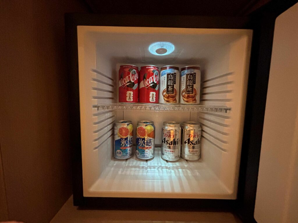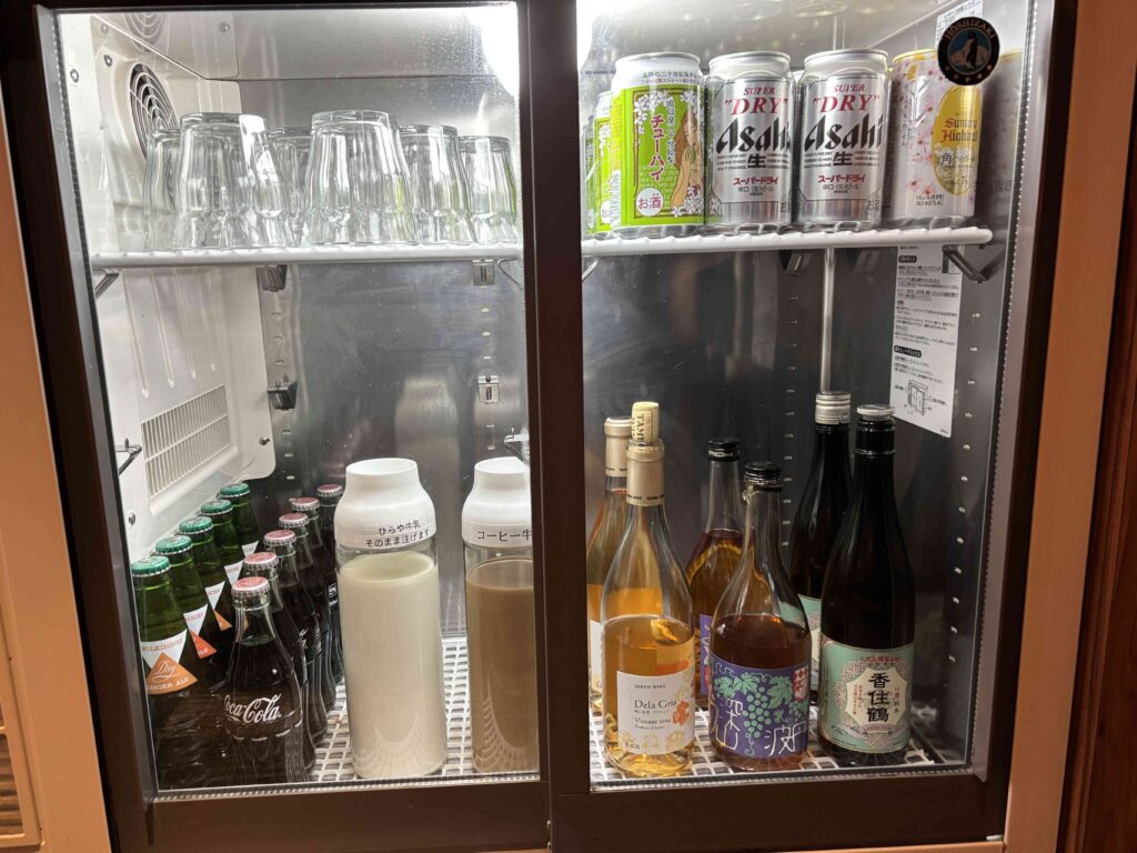「お部屋の飲み物やスナック類はすべて無料です。ただ、食事前に食べ過ぎちゃうと、夕食に響くので…夕食もかなりボリュームありますので、気をつけてください」と注意喚起(笑)。