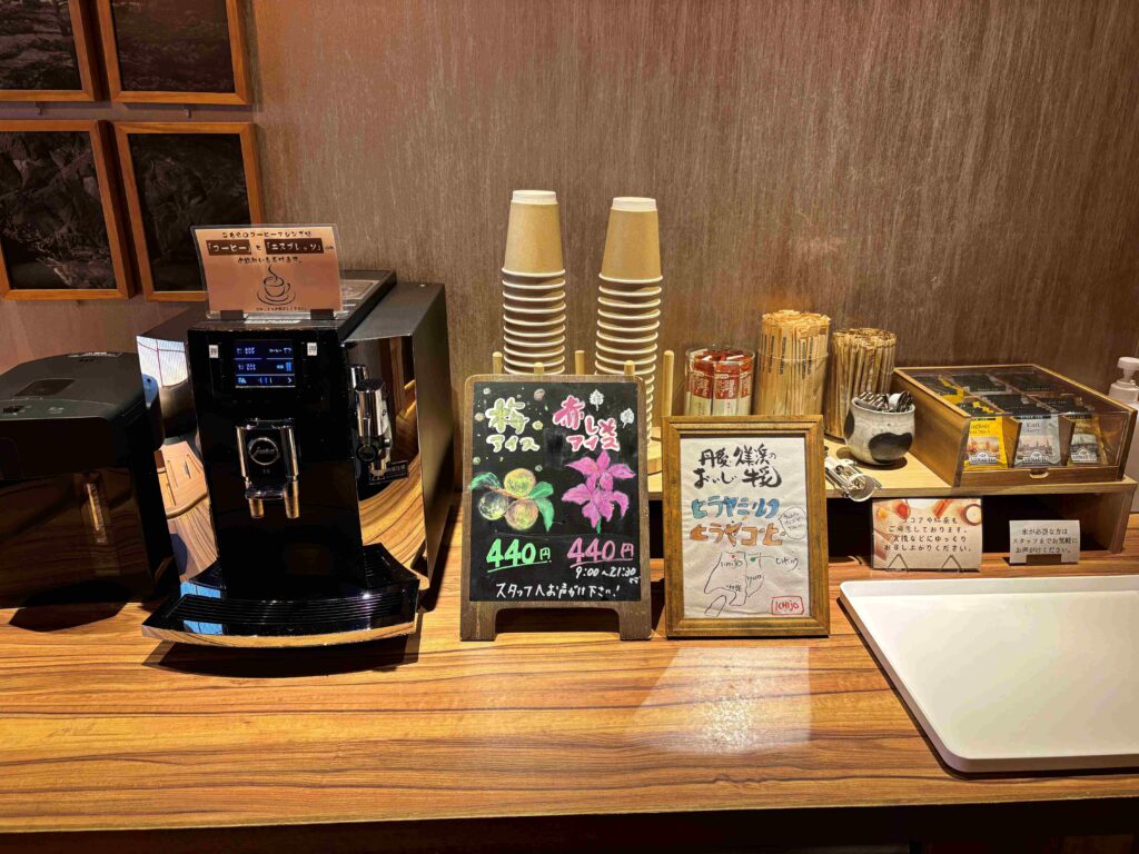 この場所でも飲めるように、スペース内に椅子やテーブルが置かれています。