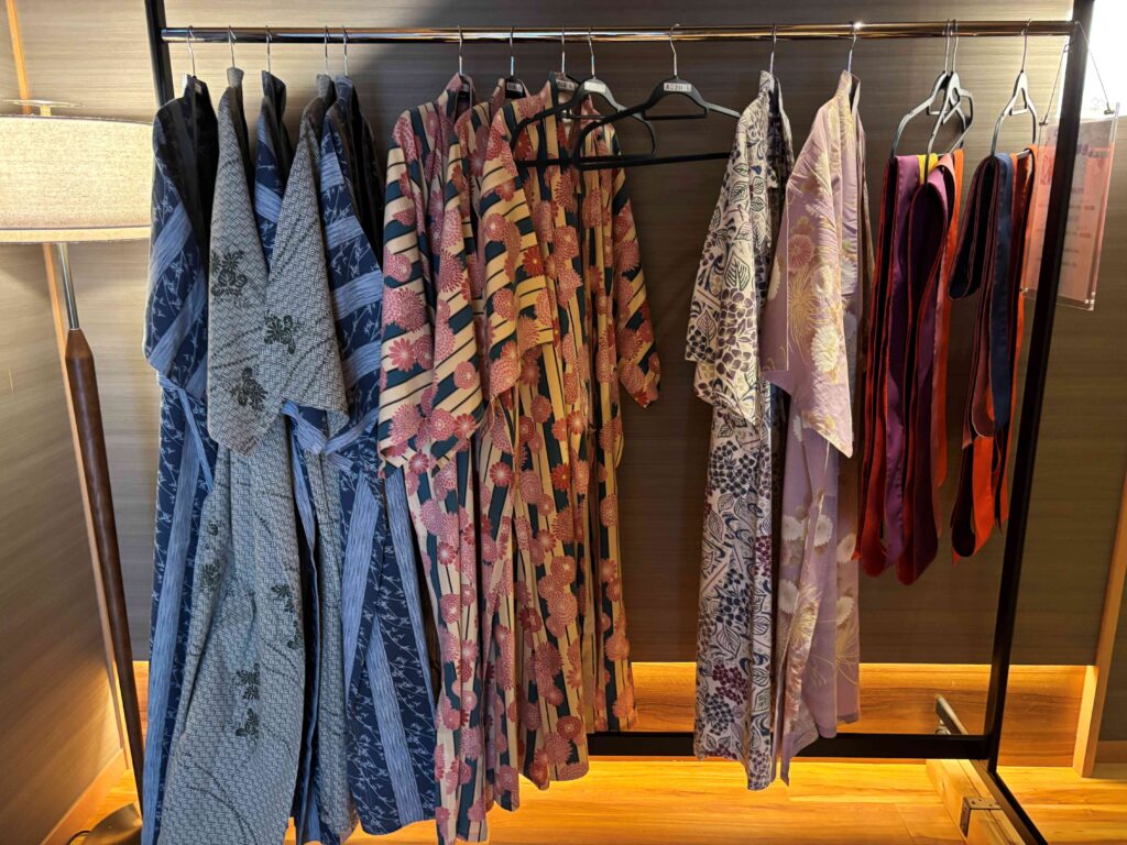 着心地の良いルームウェアの他に、廊下に「お好きにお選びください」とかわいい浴衣が並んでいます。