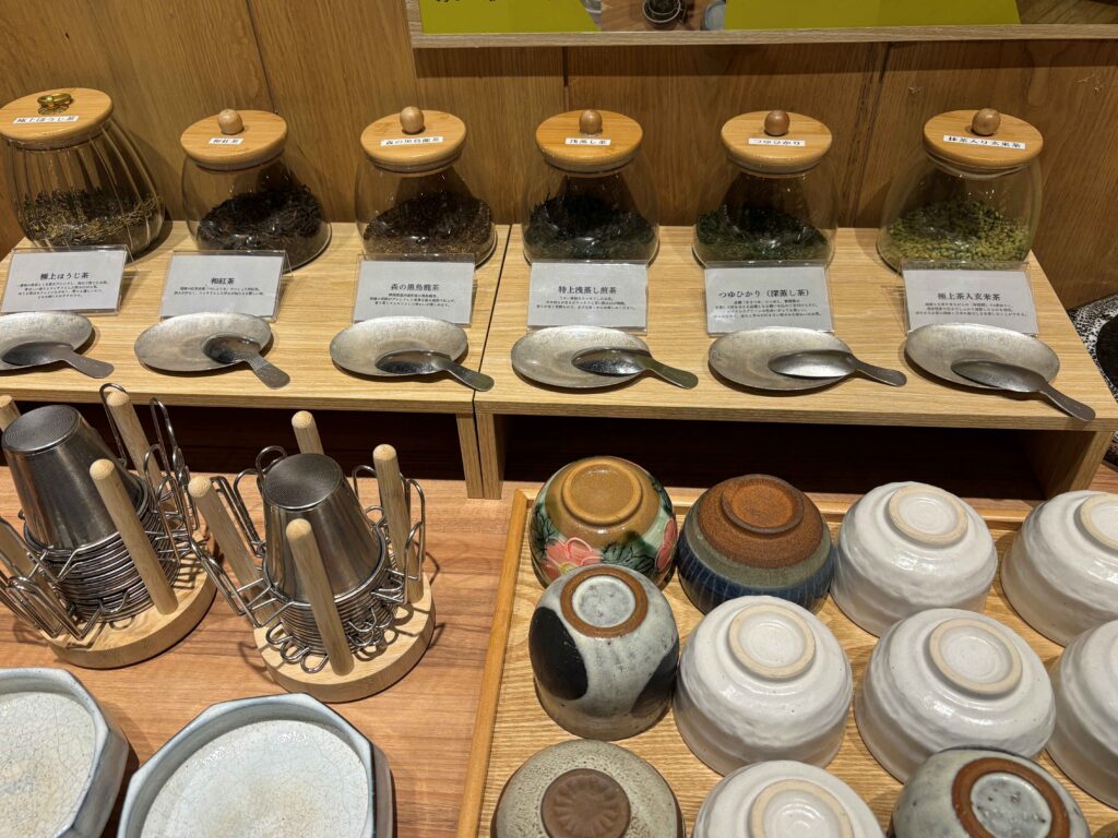 煎茶だけでなく、ほうじ茶、ウーロン茶、玄米茶などいろいろなお茶が並んでいます。