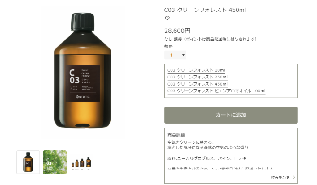 さだ助別邸ICHIJOの@AROMAラインナップ