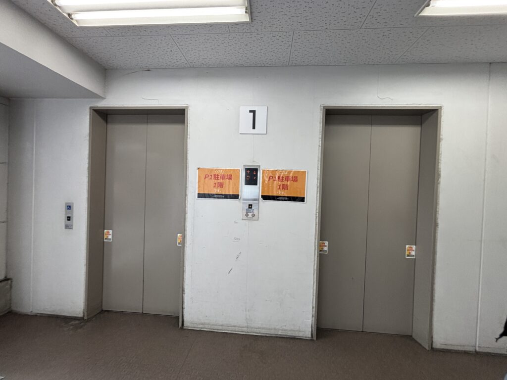 立体駐車場2階に停められて、エレベーターで地上に降ります。