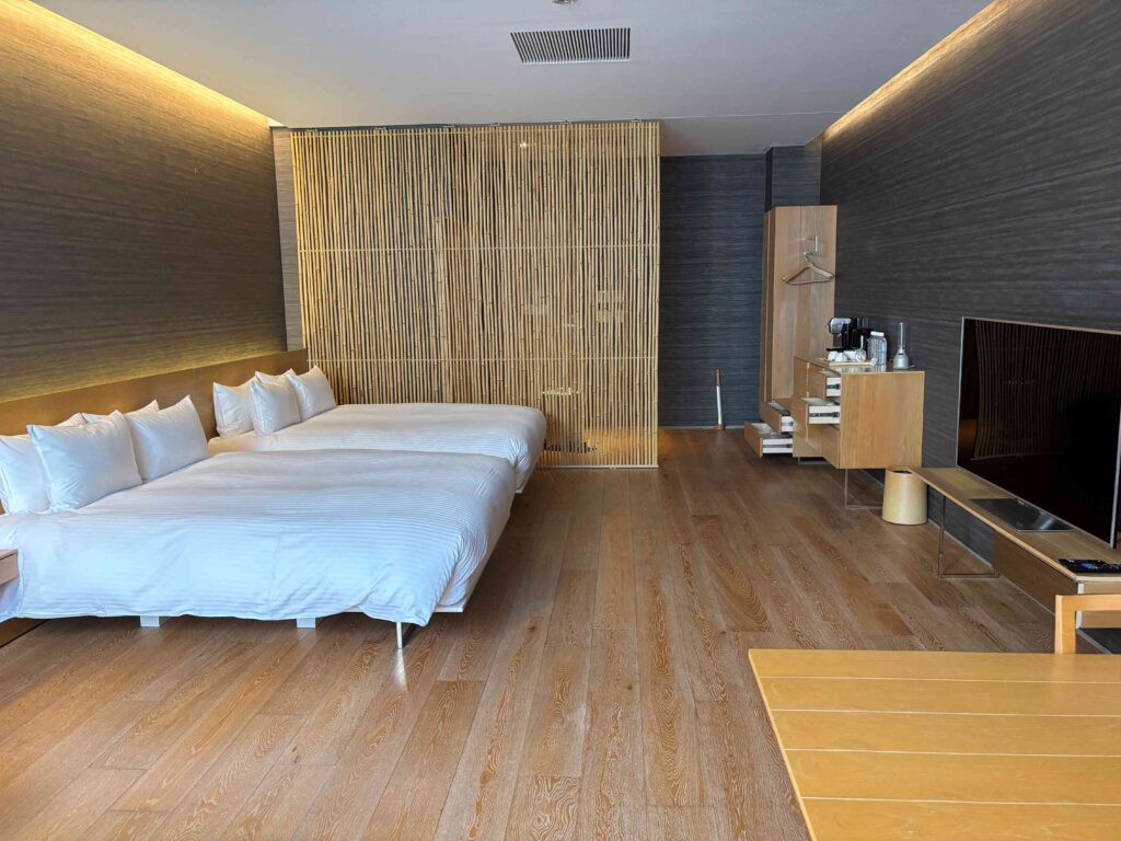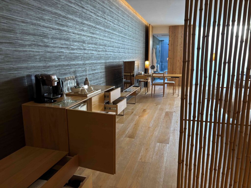 世界的建築家・隈研吾氏が設計した竹林に囲まれた空間は、一歩足を踏み入れた瞬間に空気が変わるのを感じます。