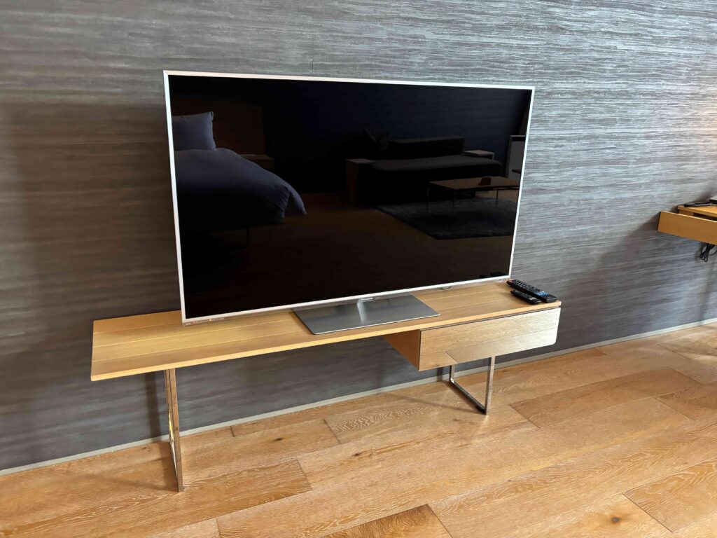 ベッドサイドに置いてみましたが、寝るときは匂いが気になるので、テレビ横に移動。