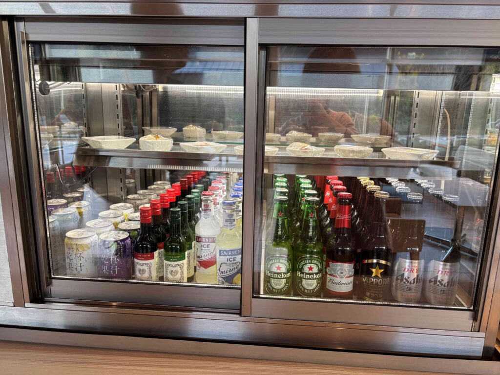 スタッフが頻回にチェックしているので、ケースも、グラスも、サーバーも常にピカピカで、とっても気持ちの良いラウンジコーナーなんです。
