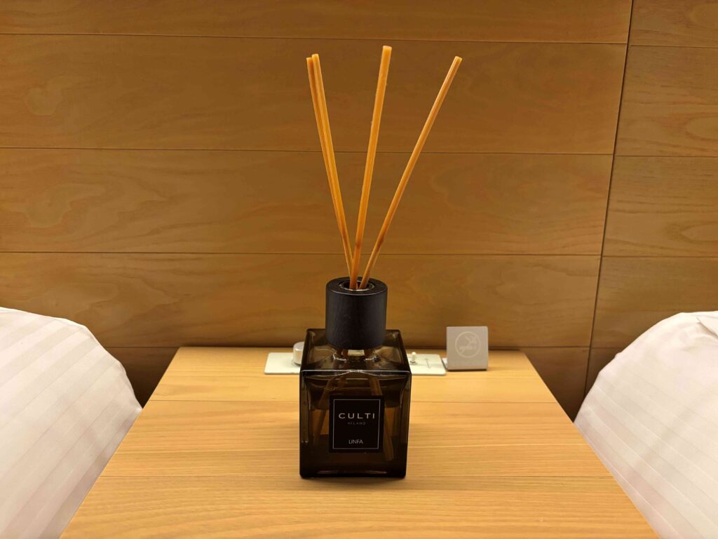 ロビーにはあのクルティのサンプルがあり、気に入った香りをお部屋に持ち込むことができます。
