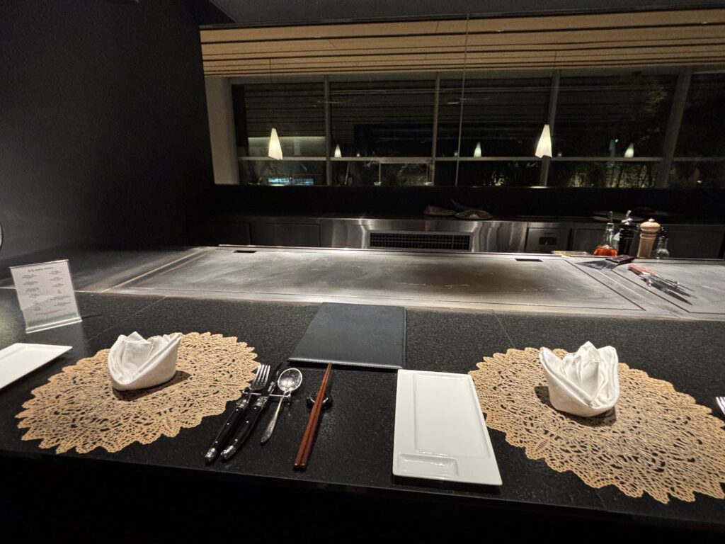 鉄板焼きのブースには私たちの他にもう一組のカップルだけで、広々としたスペースの中、ほとんど貸し切り状態でした。