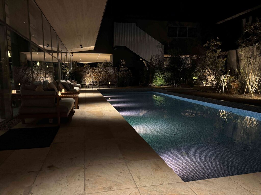 七色に変化する水中照明が、夜のバスタイムをまるでプライベートスパのような幻想的な空間に変えてくれました!